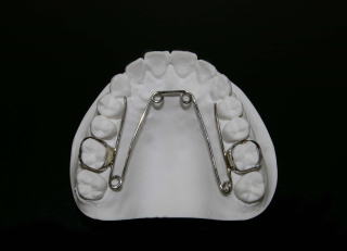 スペースコントロールのために、上下顎ともに固定式の装置をセットしました。